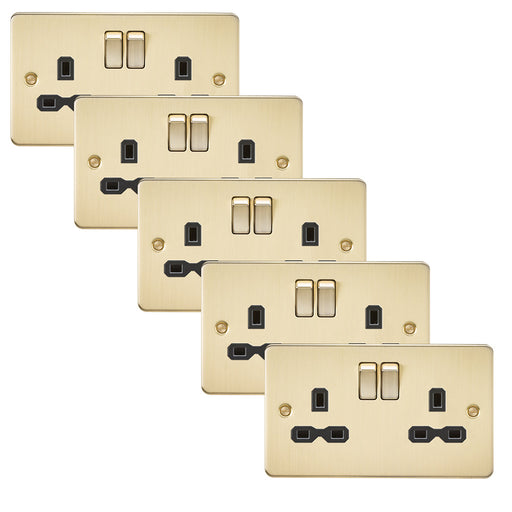 Knightsbridge FPR9000BBx5 Flat Plate 13A 2G DP Switch Socket - Brushed Brass + Black Insert (5 Pack)