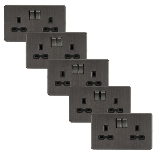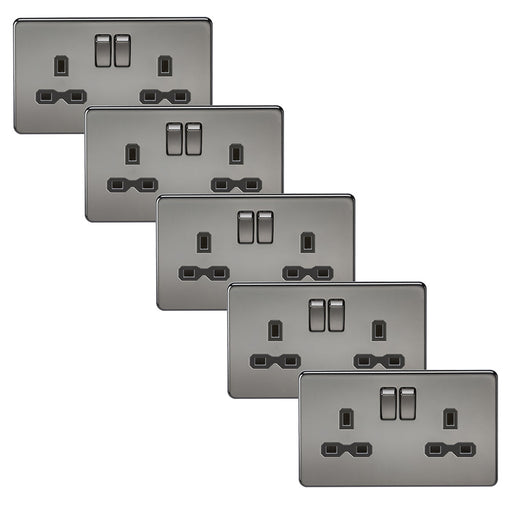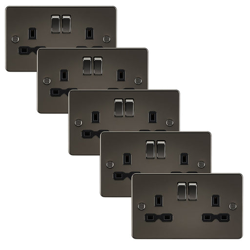 Knightsbridge FPR9000GMx5 Flat Plate 13A 2G DP Switch Socket - Gunmetal + Black Insert (5 Pack)