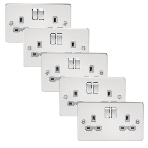 Knightsbridge FPR9000PCGx5 Flat Plate 13A 2G DP Switch Socket - Polished Chrome + Grey Insert (5 Pack)