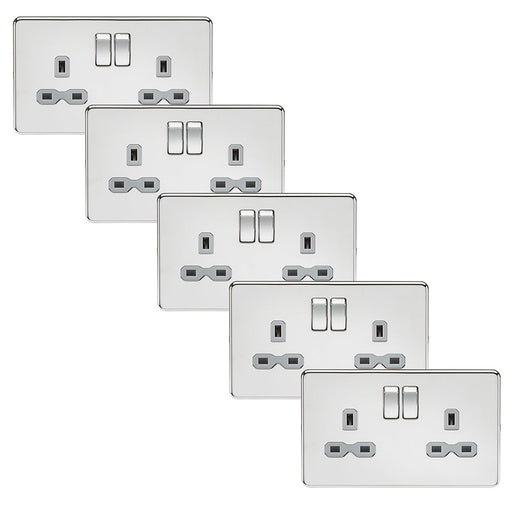 Knightsbridge SFR9000PCGx5 Screwless 13A 2G DP Switched Socket - Polished Chrome + Grey Insert (5 Pack)