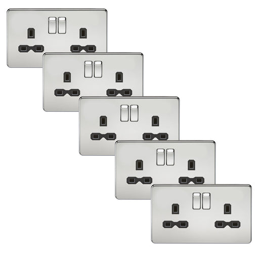 Knightsbridge SFR9000PCx5 Screwless 13A 2G DP Switched Socket - Polished Chrome + Black Insert (5 Pack)