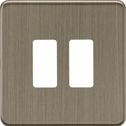 Knightsbridge GDSF002AB Screwless 2G Grid Faceplate – Antique Brass The Knightsbridge GDSF002AB Screwless 2G Grid Faceplate in antique brass combin...