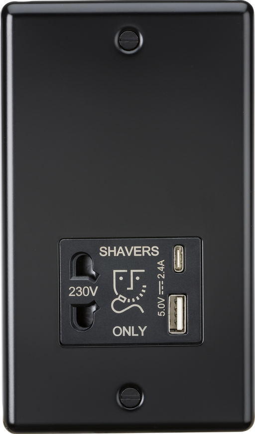 Knightsbridge CL8909MB Rounded Edge Dual Voltage Shaver Socket + 2xUSB A+C (5V DC 2.4A Shared) - Matt Black