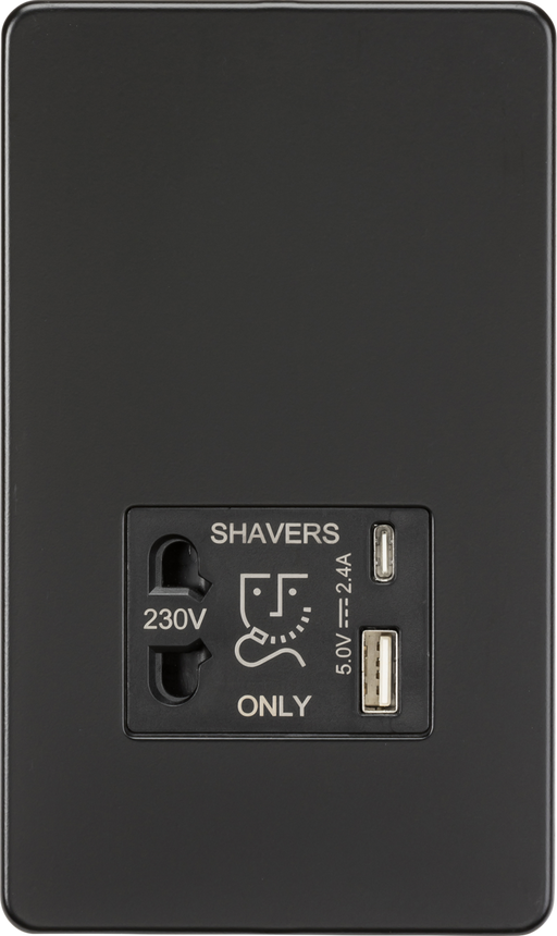 Knightsbridge SF8909MB Screwless Dual Voltage Shaver Socket + 2x USB A+C (5V DC 2.4A Shared) – Matt Black The Knightsbridge SF8909MB Dual Voltage S...