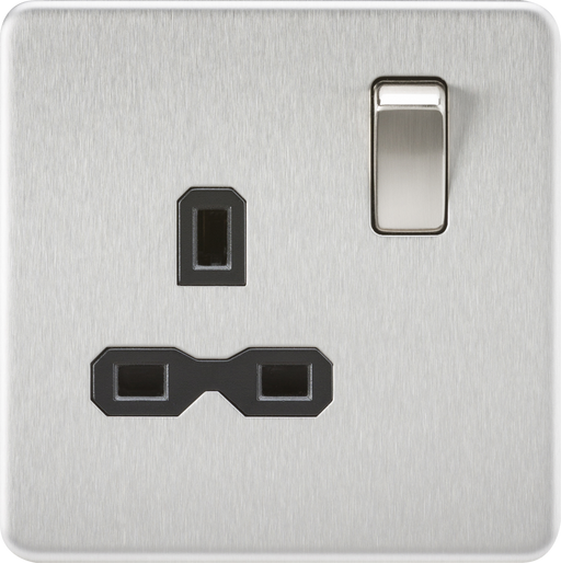 Knightsbridge FPR7000BC Flat Plate 13A 1G DP Switch Socket – Brushed Chrome with Black Insert (10 Pack) Transform your interiors with the Knightsbr...