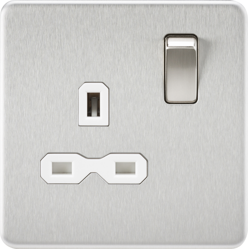 Knightsbridge SFR7000BCW Screwless 13A 1G DP Switched Socket - Brushed Chrome + White Insert