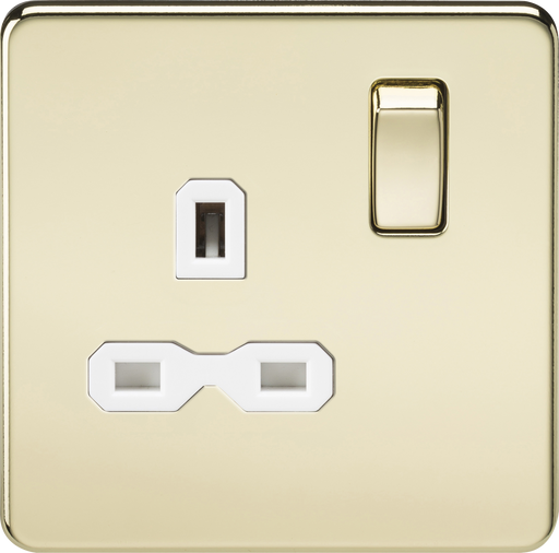 Knightsbridge SFR7000PBWx10 Screwless 13A 1G DP Switched Socket - Polished Brass + White Insert (10 Pack)