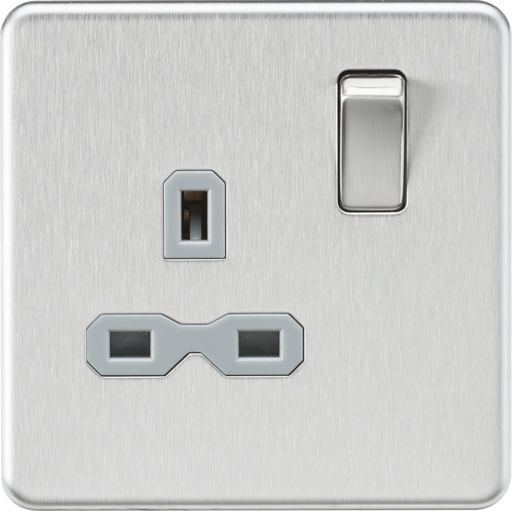 Knightsbridge CS7BCG Square Edge 13A 1G DP Switched Socket - Brushed Chrome + Grey Insert