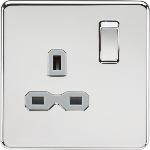 Knightsbridge FPR7000PCGx10 Flat Plate 13A 1G DP Switch Socket - Polished Chrome + Grey Insert (10 Pack)