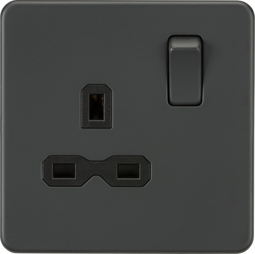 Knightsbridge FPR7000GM Flat Plate 13A 1G DP Switch Socket - Gunmetal + Black Insert