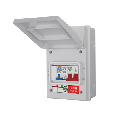 LIVE Electrical LEV440SP-P 4 Way IP65 Plastic EV Charging Unit with 40A Type A DP RCBO C Curve & 20/40kA 1P+N Surge Protective Device