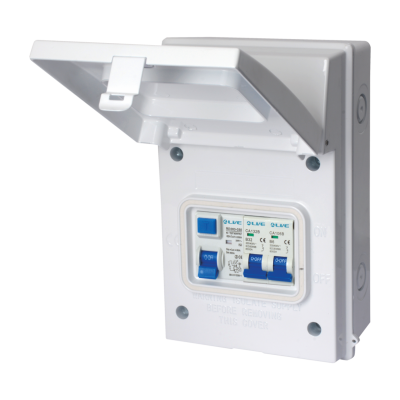 LIVE Electrical AGU63620 4 Way IP65 White Metal Garage Unit with 63A 30mA Type A RCD, B6A/B20A MCB Product Description IP65 Metal Garage Unit Consu...