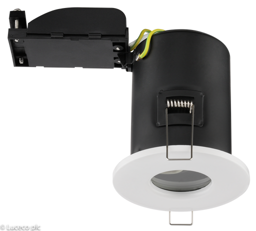 Luceco Fixed IP65 Fire Rated GU10 Downlight - White IP65 fixed fire rated GU10 downlight, steel body construction with diecast aluminium lock ring...