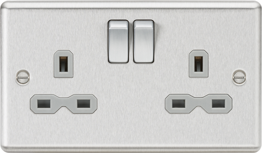 Knightsbridge CL9BCG Rounded Edge 13A 2G DP Switched Socket - Brushed Chrome + Grey Insert