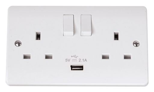 Click Mode CMA770 White Moulded 13A 2G Switched Socket Outlet + 1x 2.1A USB