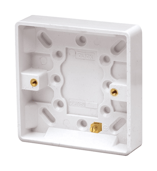Click Mode CMA080 White Moulded 1 Gang 16mm Deep Pattress Box with Earth Terminal