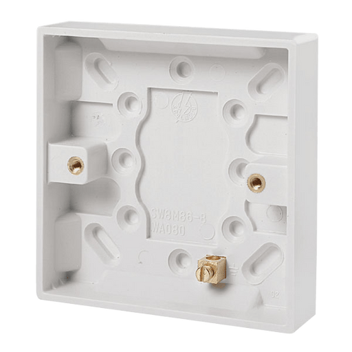 Knightsbridge SN1300 White Square Edge Single 16mm Pattress Box + Earth Terminal