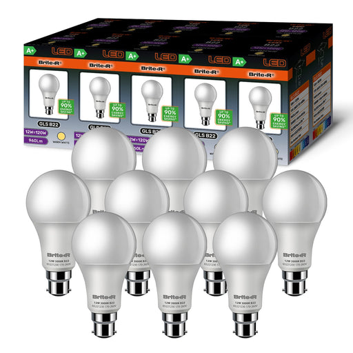 Brite-R 12W B22 BC GLS LED Bulb Warm White 3000K (10 Pack)