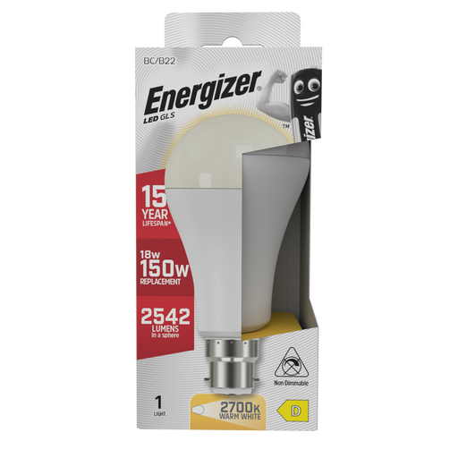 Energizer S29831 18W 2452lm B22 BC GLS LED Bulb Opal Warm White 2700K Energizer products are recognised as one of the most trusted and highly desir...
