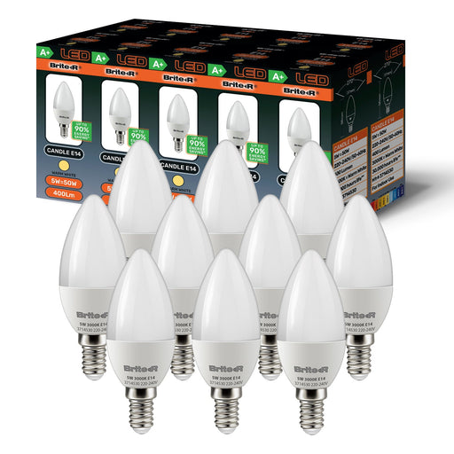 Brite-R 5W E14 SES Candle LED Bulb - Warm White 3000K (Pack of 10) Product Overview Discover the exceptional quality of Brite-R's latest E14 Candl...