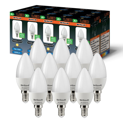 Brite-R 7W E14 SES Candle LED Bulb - Warm White 3000K (Pack of 10) Product Overview Discover the exceptional quality of Brite-R's latest E14 Candl...