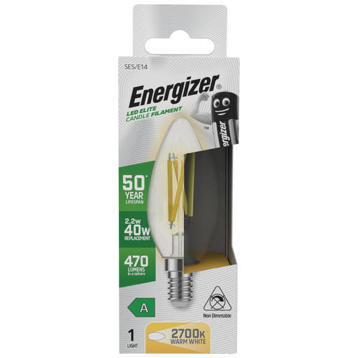 Energizer S29640 A Rated LED Elite Candle E14 Filament 470lm 2.2W 2700K (Warm White) Energizer products are recognised as one of the most trusted a...