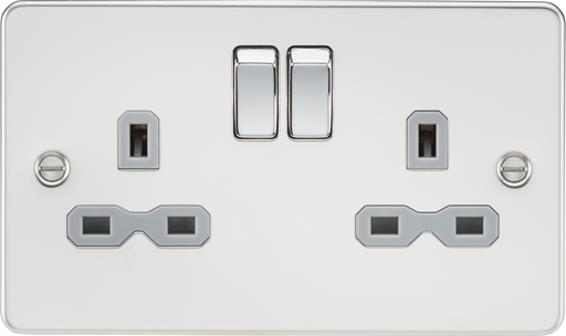 Knightsbridge FPR9000PCGx5 Flat Plate 13A 2G DP Switch Socket - Polished Chrome + Grey Insert (5 Pack)