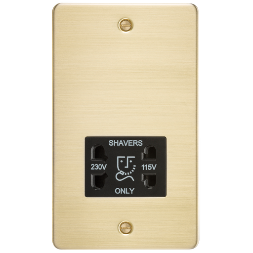 Knightsbridge FP8900BB Flat Plate 115/230V Dual Voltage Shaver Socket – Brushed Brass + Black Insert The Knightsbridge FP8900BB is the perfect upgr...