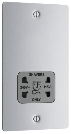 BG SBS20G Flatplate Screwed Dual Voltage Shaver Socket - Grey Insert - Brushed Steel Flatplate Screwed Decorative Wiring Accessories Our slimline ...