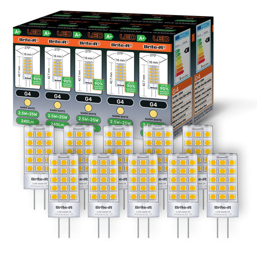 Brite-R 2.5W G4 LED Bulb - Warm White 3000K (Pack of 10) Product Overview Discover the exceptional quality of Brite-R's latest G4 LED bulbs, desig...
