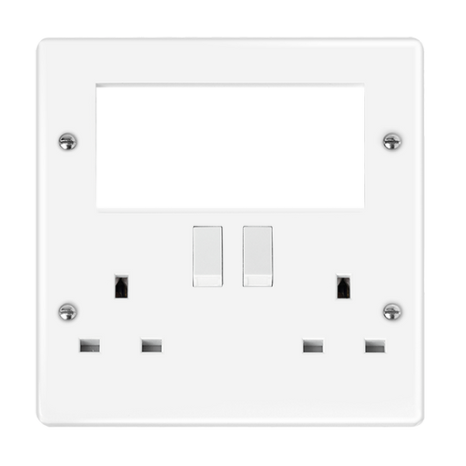 BG 8222EM8 White Round Edge 2x 13A DP Double Socket & 2x Quad Euro Module