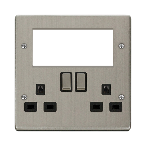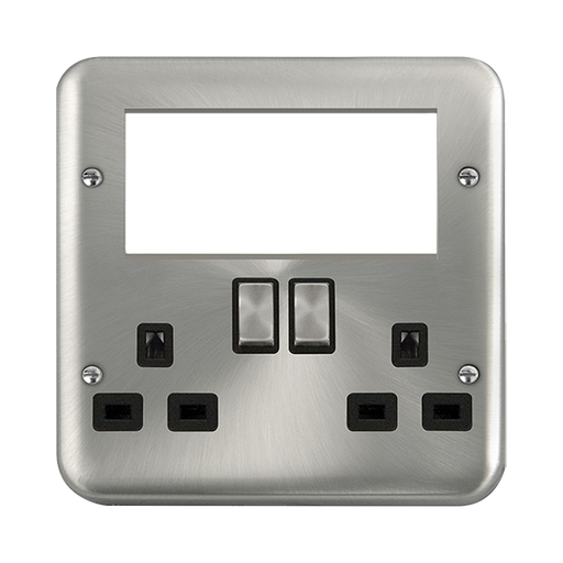 Click Deco Plus DPSS604BK 2 Gang 3 Pin Safety Shutter Switched Socket with Quad New Media Apertures - Stainless Steel (Black)