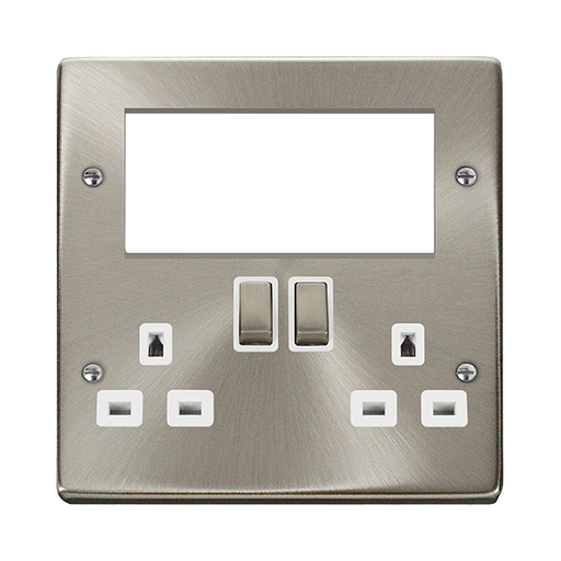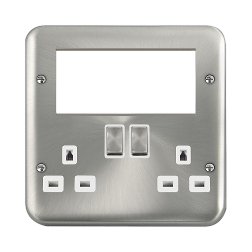 Click Deco Plus DPSC604WH 2 Gang 3 Pin Safety Shutter Switched Socket with Quad New Media Apertures - Satin Chrome (White)