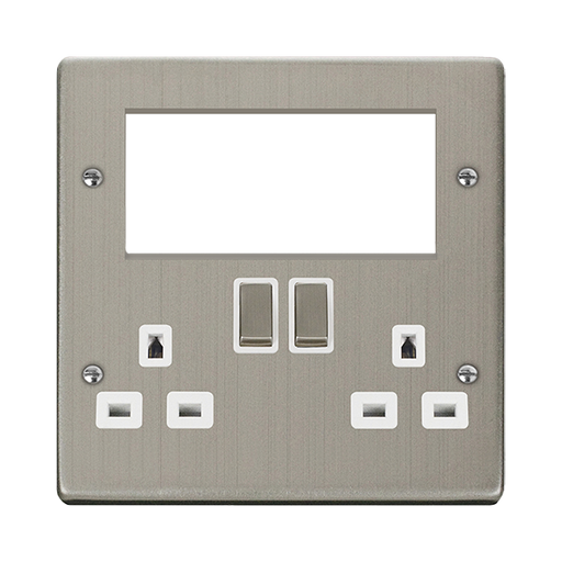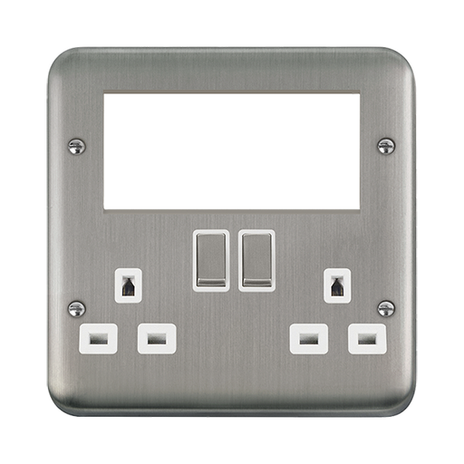 Click Deco Plus DPSS604WH 2 Gang 3 Pin Safety Shutter Switched Socket with Quad New Media Apertures - Stainless Steel (White)