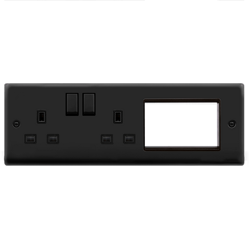 Click MP603MBBK Half New Media Part Furnished Front Plate - 2 X 13A DP Switched Sockets & 3 Apertures - Black - Matt Black