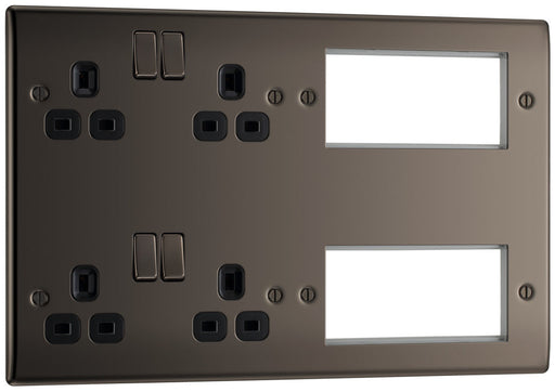 BG NBN222EM8B Nexus Metal 2x 2G Socket 13A + 2x 4 Module Aperture - Black Insert - Black Nickel