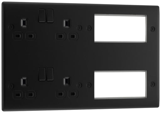 BG NFB222EM8B Nexus Metal 2x 2G Socket 13A + 2x 4 Module Aperture - Matt Black + Black Rocker