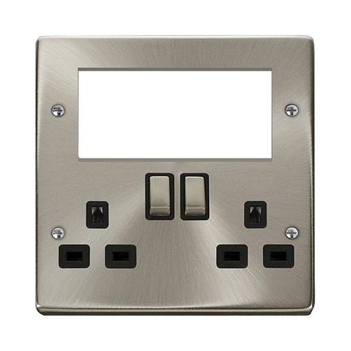 Click Deco Plus DPSC604BK 2 Gang 3 Pin Safety Shutter Switched Socket with Quad New Media Apertures - Satin Chrome (Black)