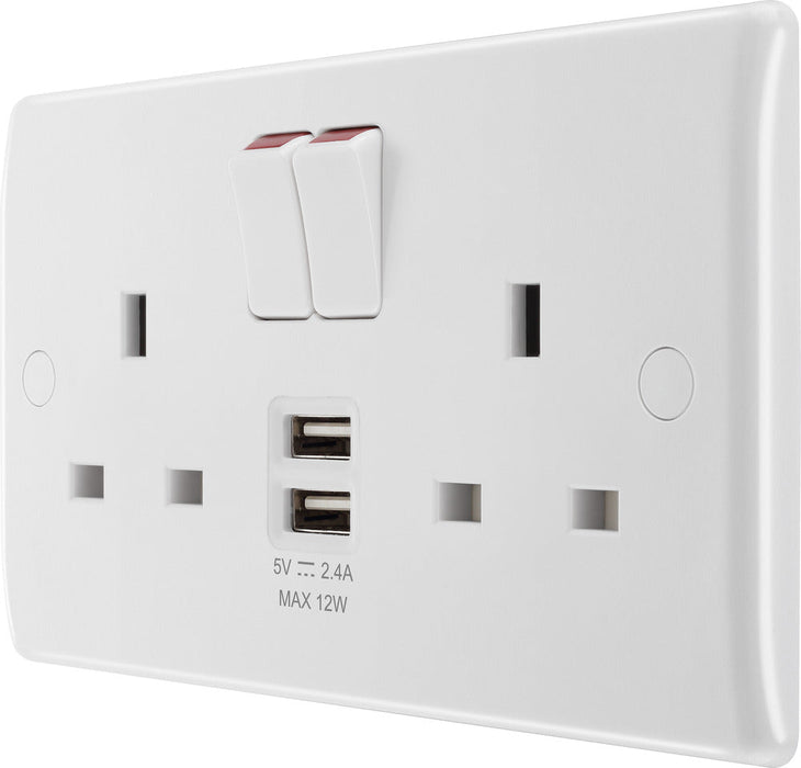 BG 822UAA12 White Round Edge 13A Double Socket + 2xUSB A (12W)