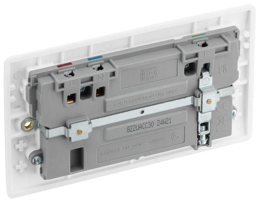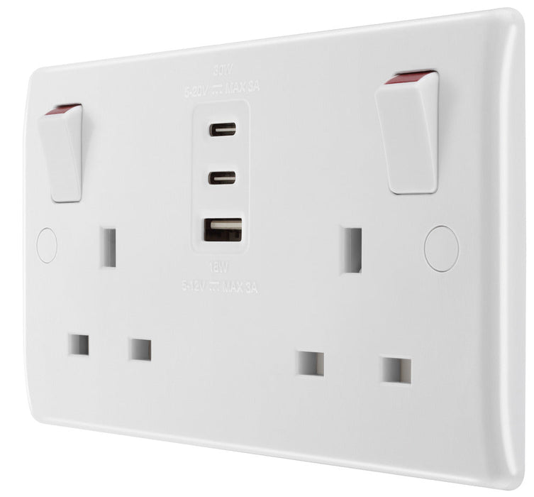 BG 822UACC30 White Round Edge 13A Double Socket + 2xUSB C +1xUSB A(30W)