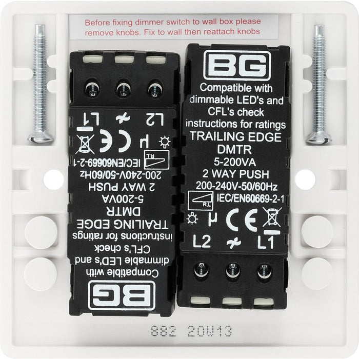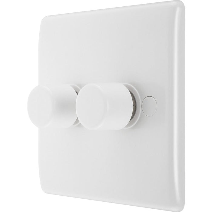 BG White Round Edge 2-Way Double Trailing Edge Dimmer Push On/Off