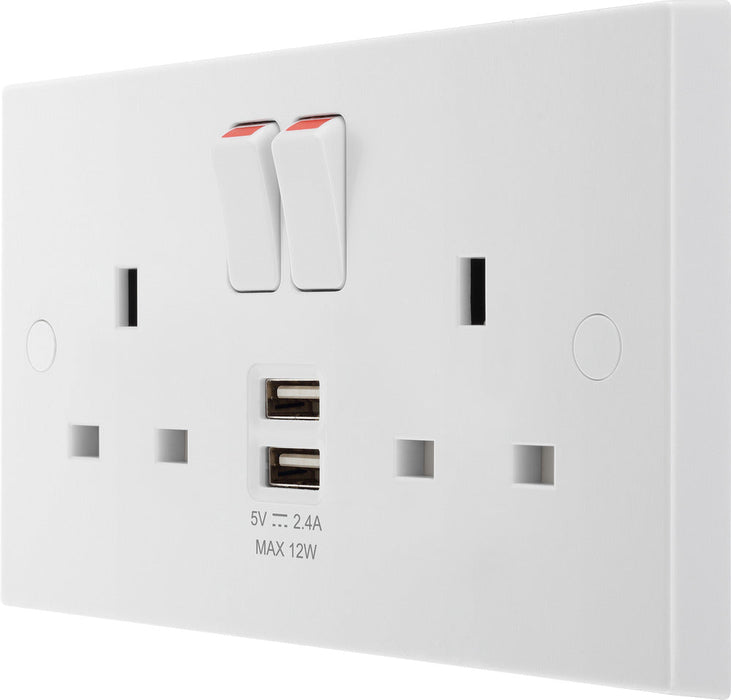 BG 922UAA12 White Square Edge 13A Double Socket + 2xUSB A (12W)