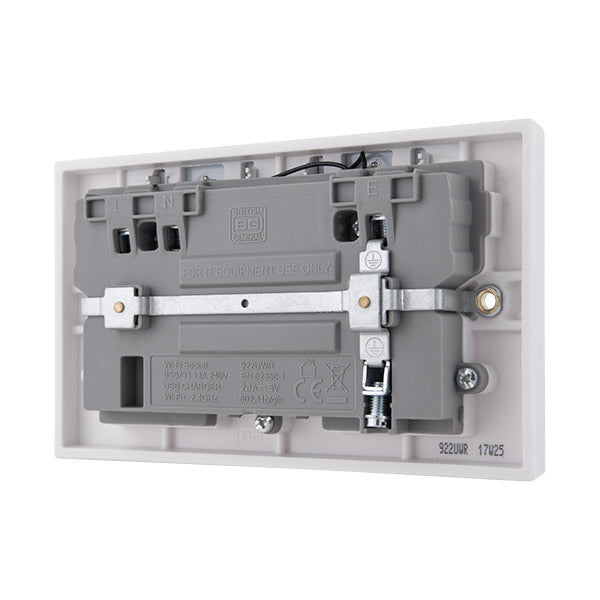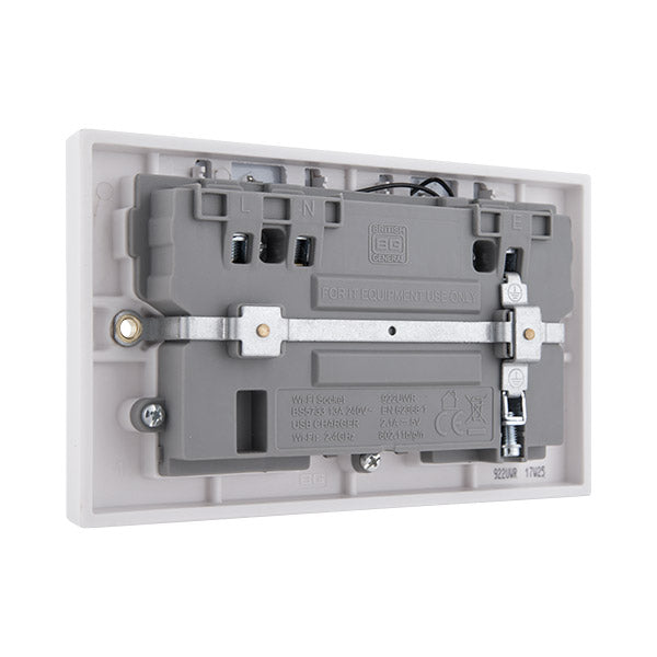 BG 922UWR White Square Edge 13A Double Socket + Wifi Extender +1x USB(2.1A)