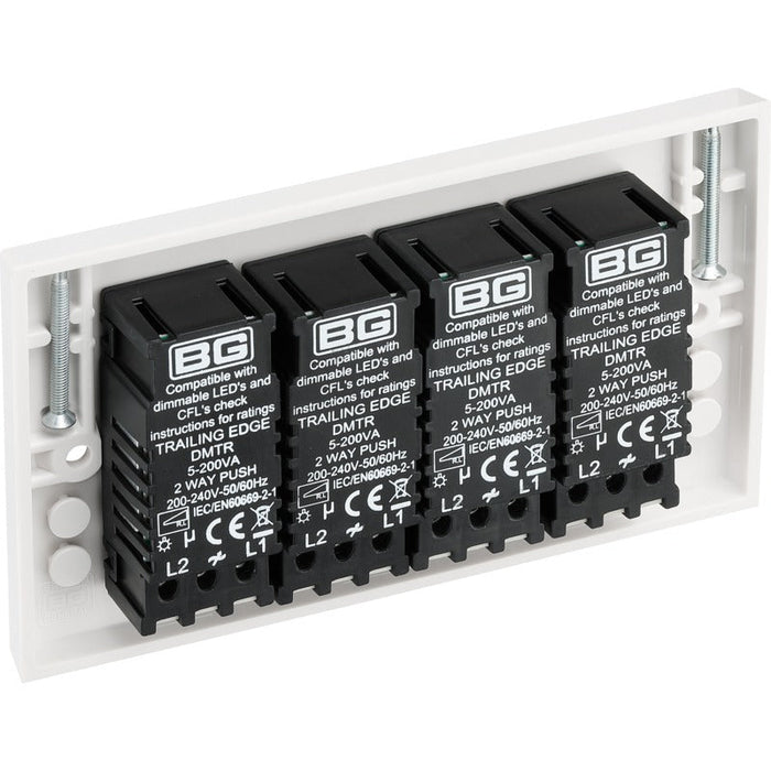 BG White Square Edge 2-Way Quad Trailing Edge Dimmer Push On/Off