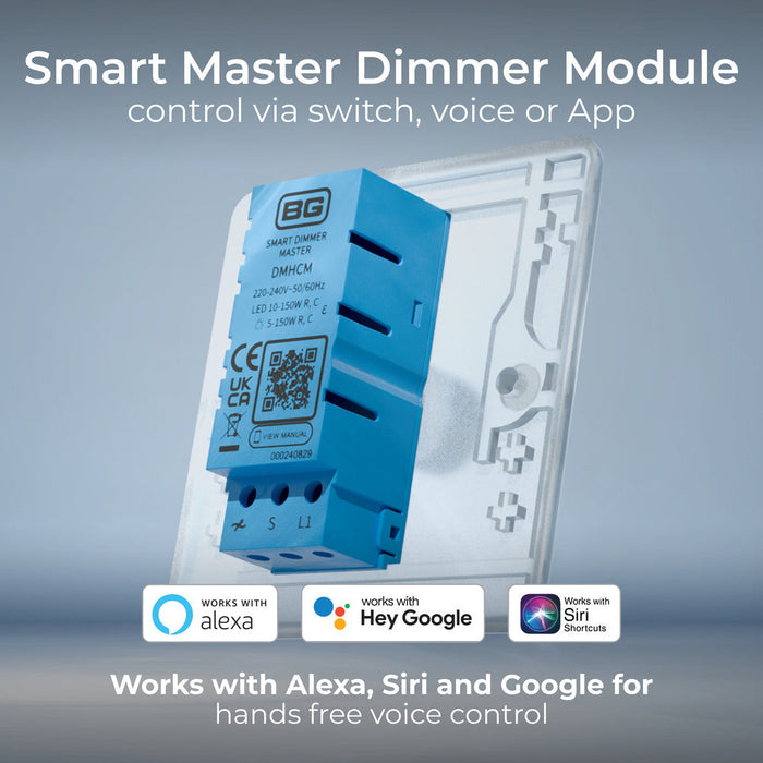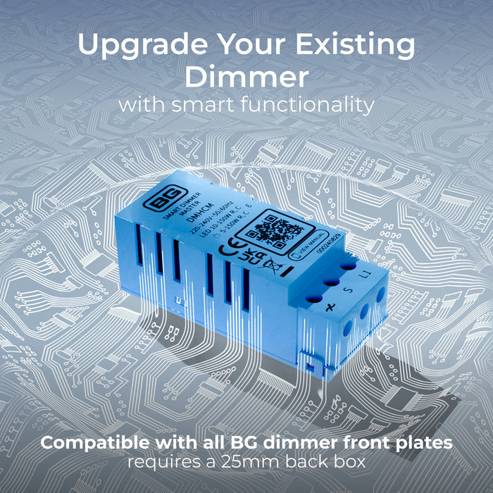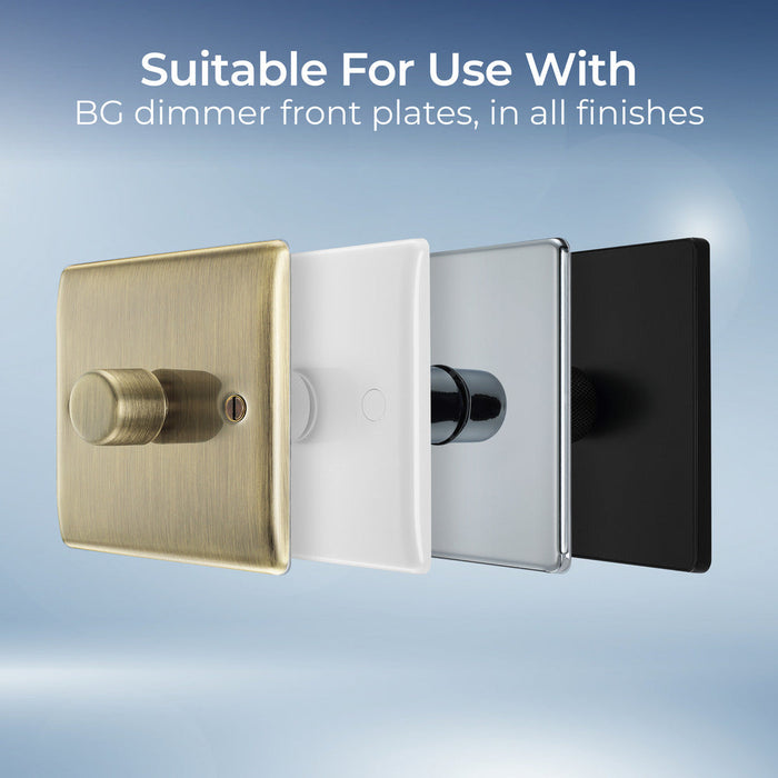 - Make your existing dimmer smart - compatible with all BG dimmer front plates, including 800 Series, 900 Series, Nexus Metal, Evolve and Screwless Flatplate.