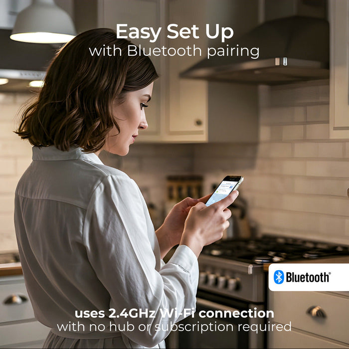 - Pair via Bluetooth and connect to your home Wi-Fi (2.4GHz) - no hub or subscription required