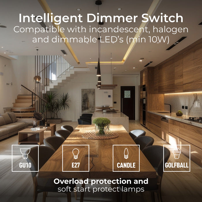 - Compatible with incandescent, halogen and dimmable LED's (minimum 10W)