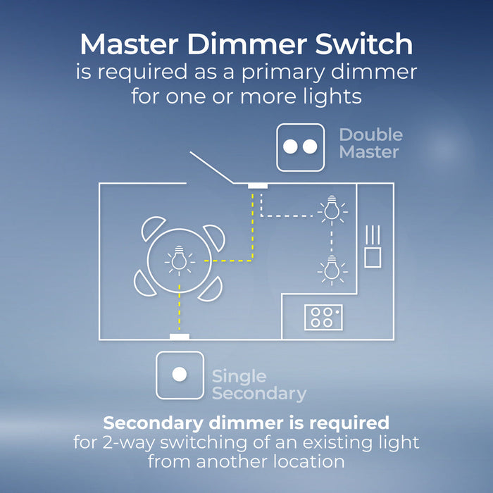 - 2-way switch allows operation from a second location when used with a BG Smart secondary dimmer