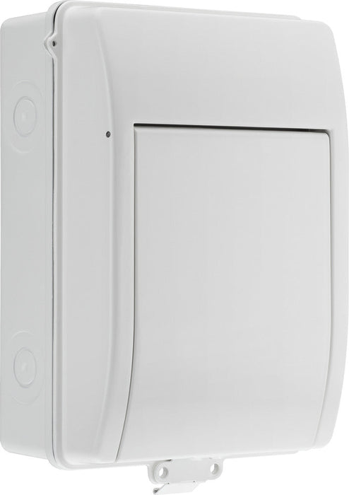 BG CFE7AFAW 5 Module IP65 Weatherproof White Metal EV Charger Circuit Protection with 100A Main Switch, 40A 30mA Type A AFDD & Type 2 SPD