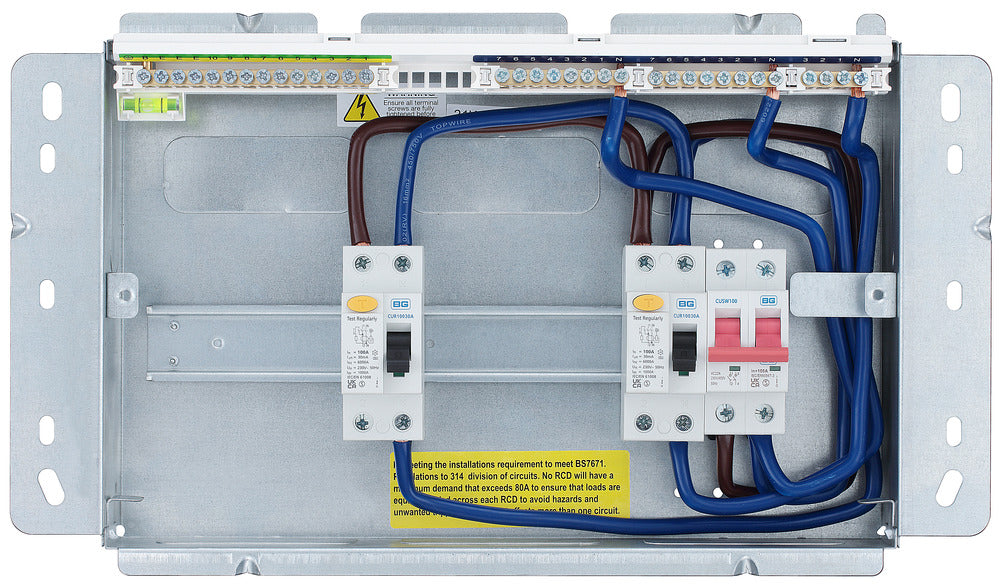 BG CFFD1000010A 16 Module 10 Way Fully Recessed Unpopulated + 100A Switch, 2x100A Type A 30mA RCD